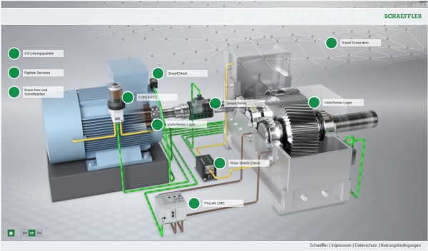 셰플러 시스템 및 구성품은 기계에서 가장 중요한 데이터가 생성되는 곳에 설치됩니다. 셰플러 부품은 지능형 센서를 갖추고 있어 Industry 4.0에 필수적인 핵심 기술이 됩니다. 고객은 셰플러의 영역 노하우를 활용할 수 있습니다. 예방 유지보수를 위한 상태 모니터링 솔루션과 클라우드 기반 디지털 서비스는 기계 및 장비의 상태에 관한 정보를 연속으로 제공합니다.